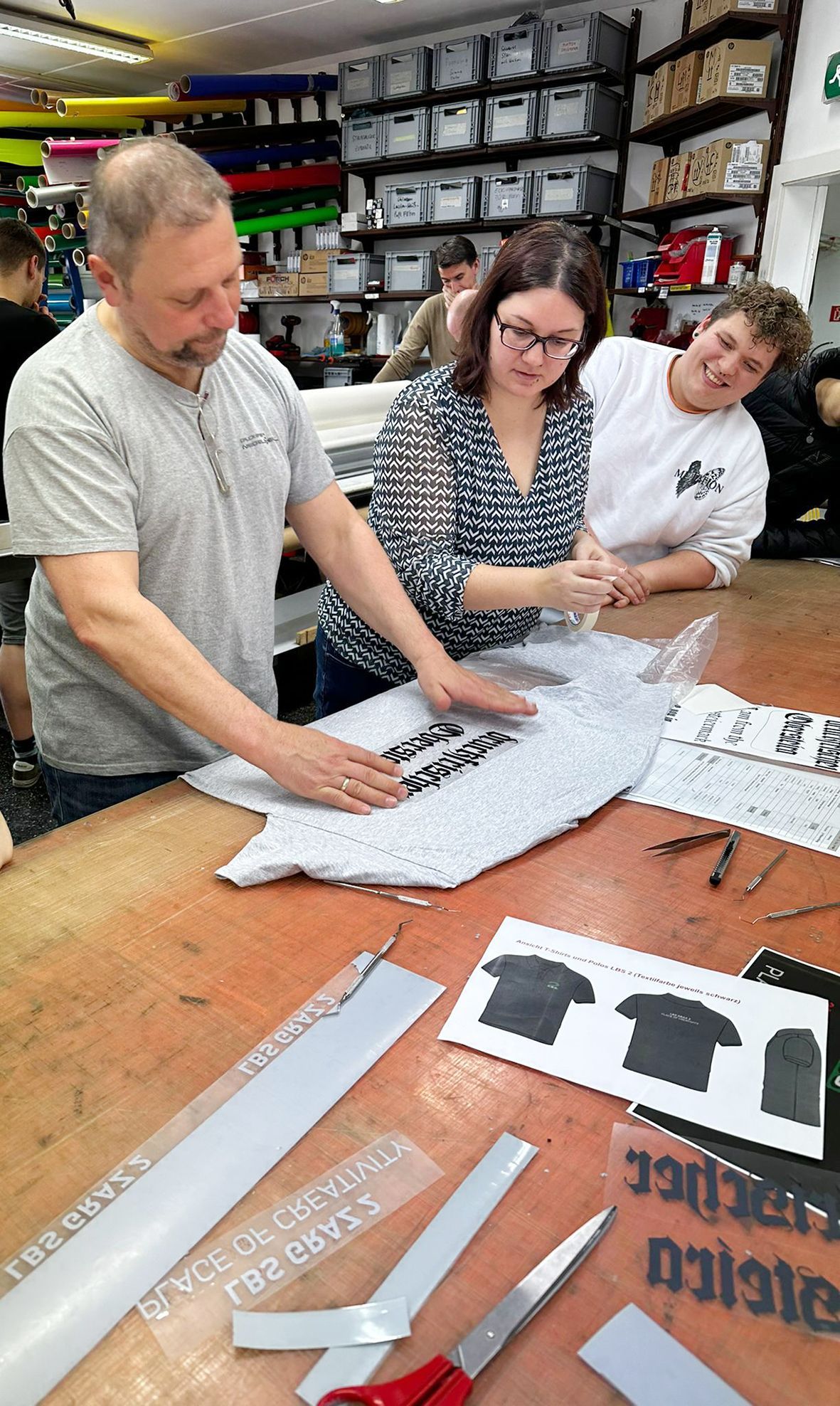 Schüler und Lehrer der LBS Graz 2 (Buchbindetechnik und Postpresstechnologie, Drucktechnik, Druckvorstufentechnik) waren Mitte April 2023 zu Gast bei der Druckerei Niegelhell. Nach einer Betriebsführung von Chef Richard Niegelhell wurde im Rahmen eines Workshops selbst Hand angelegt und wurden verschiedene Arten des Textildrucks ausprobiert. Beim anschließenden Grillen war ausreichend Zeit für Fachgespräche und ein gemütliches Beisammensein.