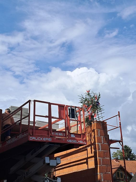 Am 27.06. 2024 lud unser Chef zur Gleichenfeier der neu erbauten Produktionshalle ein! Aufgrund einer großen Erweiterung unseres Maschinenparks, war der Ausbau des bestehenden Gebäudes dringend notwendig und ist nun voll im Gange. Nach etlichen Wochen harter Arbeit kam nun endlich - mit viel Schweiß und Elan unserer fleißigen Bauarbeiter - das Dach auf die Halle, was dann auch sogleich mit Helfern, Mitarbeitern, Freunden und Nachbarn gebührend gefeiert wurde!